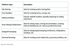 In the latest report from Palo Alto Network’s Unit42, Legitimate SaaS Platforms Being Used to Host Phishing Attacks, we find that the increases are far more significant than expected. According to the report, the following types of SaaS platforms were included in their analysis of phishing URLs: