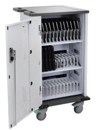 Transport, secure and charge up to 40 devices in one place with the Zip40 Charging Cart. The adjustable dividers in this easy-to-move cart fit tablets, Chromebooks™, Ultrabooks™, MacBooks® and laptops, keeping your devices ready for any lesson plan.